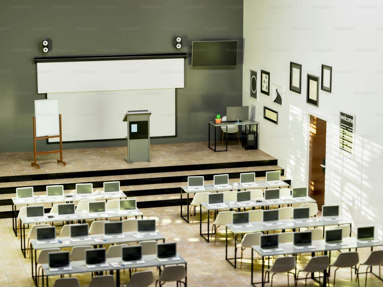 Nos salles sont équipées: écrans LED grand format, système de sonorisation professionnel, éclairage scénique, connexion fibre optique pour le streaming live. Mobilier design et décoration personnalisable.